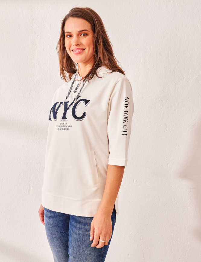 • Sportives Shirt mit weitenregulierbarer Kapuze