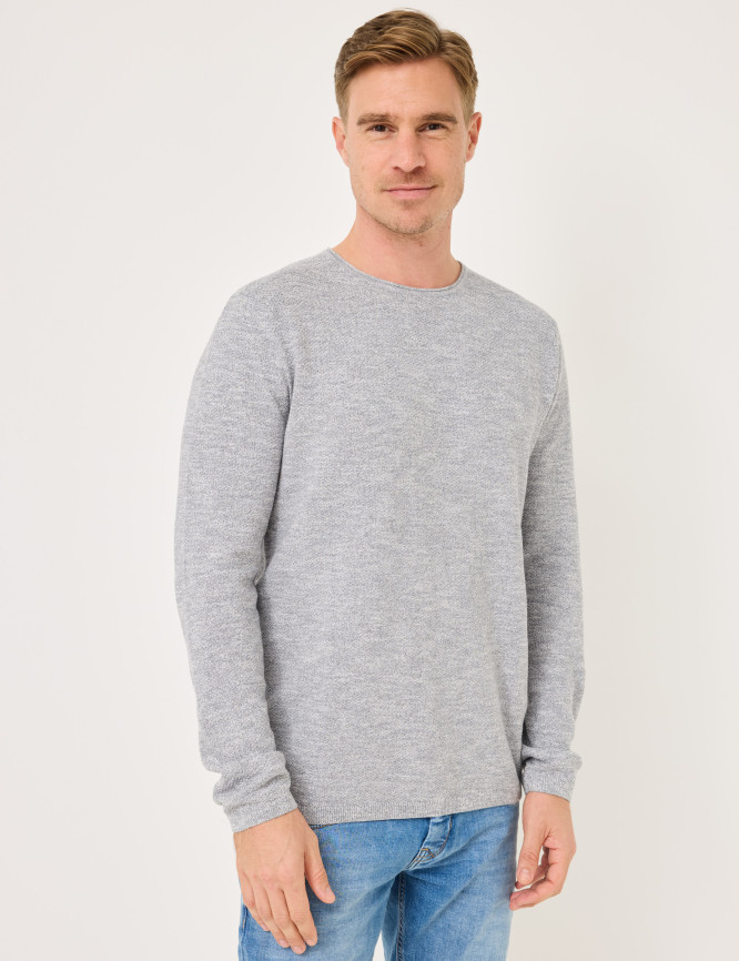 • Angenehm zu tragender Feinstrick mit dezenter Perl-Struktur und Melange-Effekt