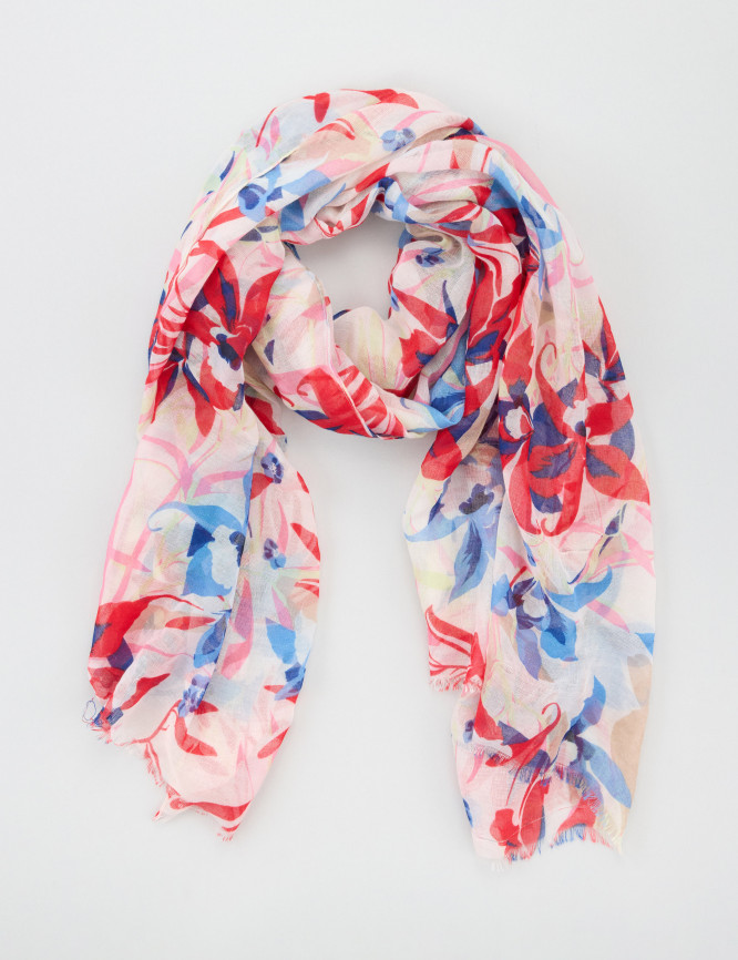 • Mit farbenfrohem Muster aus Blättern und Blüten
