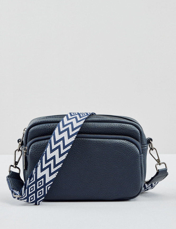 • Cooles Highlight: der längenverstellbare Schulterriemen aus angesagtem Webband mit grafischem Muster
