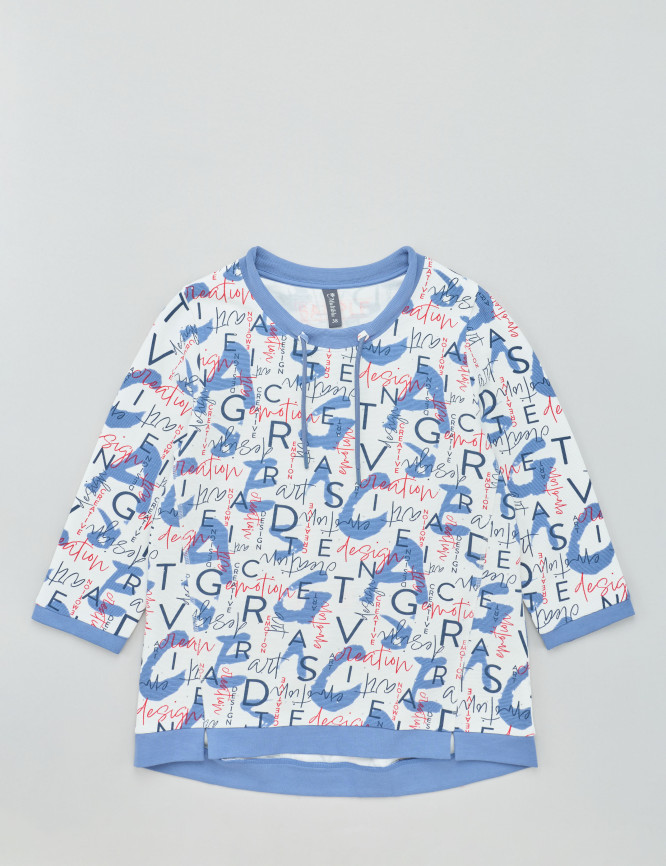 - Ein farbenfroher und dezent glitzernder Allover-Wording-Print macht das Shirt zu einem echten Hingucker